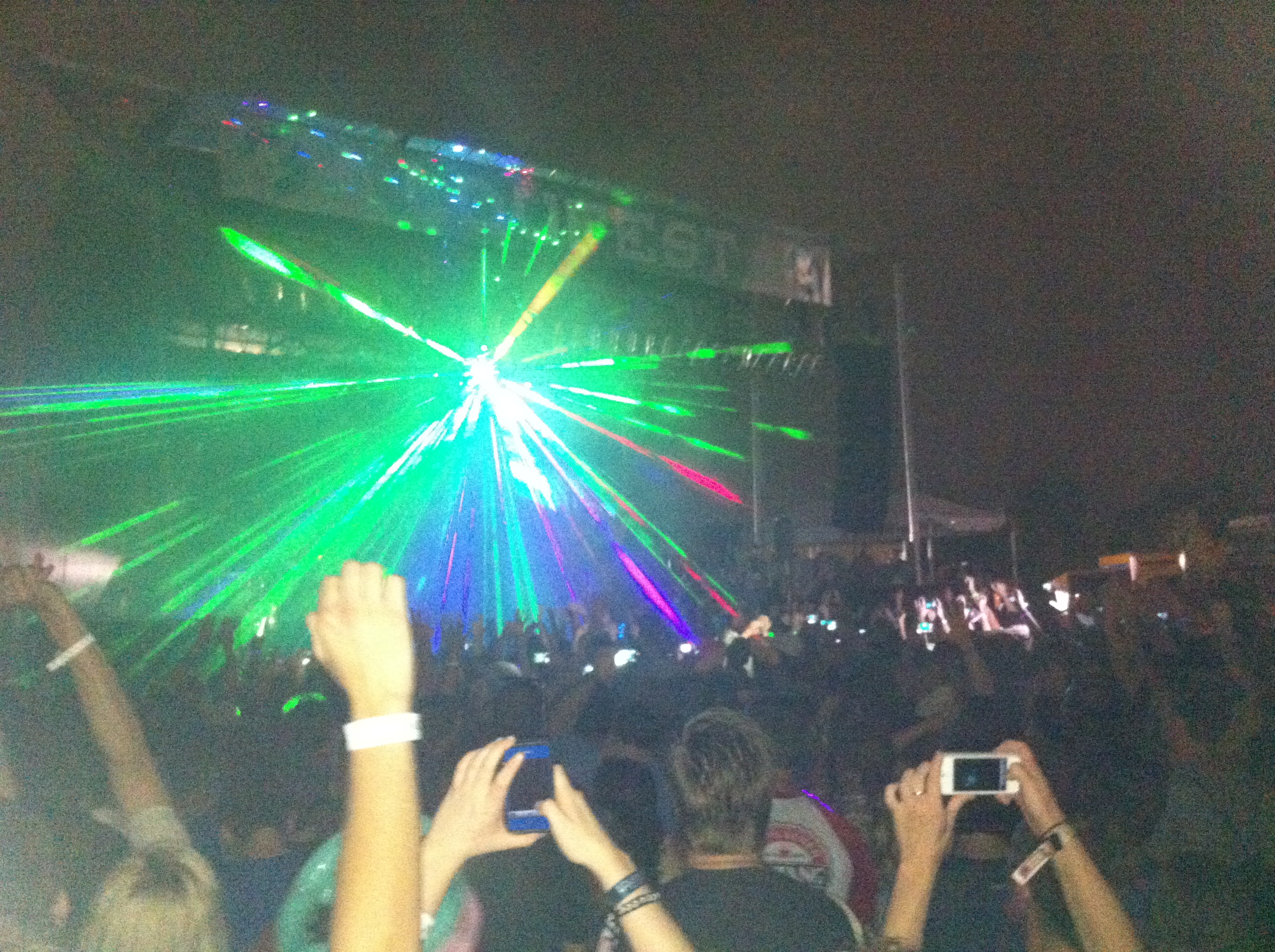 The band played the awesome “The Yeah Yeah Yeah Song” and everyone was feeling super-groovy. I expected them to continue playing light, cotton-candy festival fare but things took a darker, more obscure turn. The band played a couple of gloomy songs back-to-back. Well, they were gloomy for The Flaming Lips…which means there was still giant foam hands that shot multi-colored lights at a massive disco ball. Their newer stuff is more creepy electronica than it is trippy psych-pop, which is what I expected them to play. The band ended the dark part of their set with a strange song called “Drug Chart” which I had never even heard of. Things became more upbeat as the band finished up with “What is the Light?” before closing with the awesome “Do You Realize??”